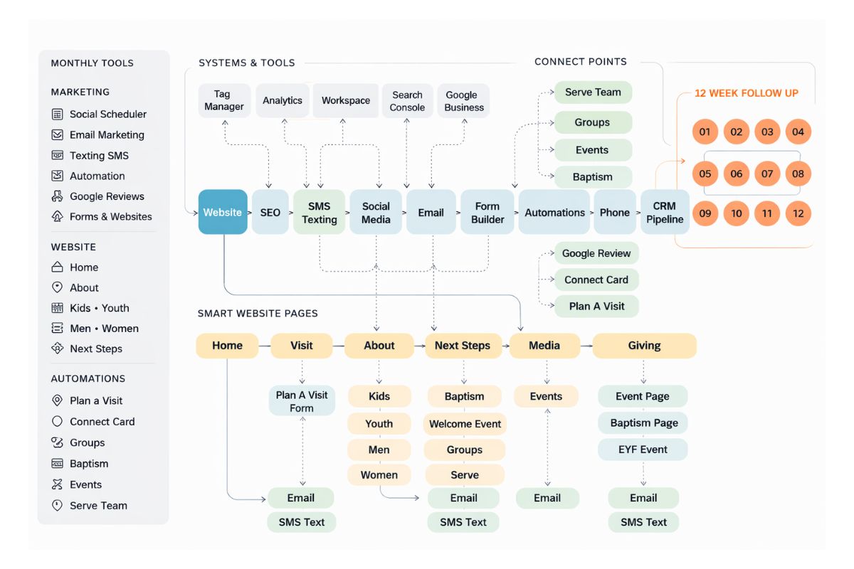 We build custom church websites with built-in SEO, Google Business Profile optimization, and automated visitor follow-up systems that help your church be found online and grow.
